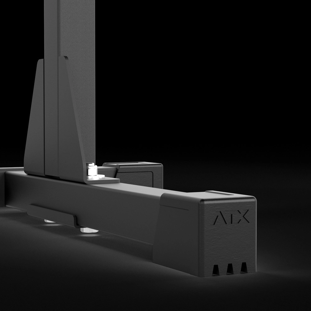 Sicherheit steht an oberster Stelle, weshalb die ATX® FREE STANDS 510 in einer soliden Dreifuß-Bauweise konzipiert wurden, die eine wackelfreie Stabilität gewährleistet. Neben der reinen Hantelablage bieten die ATX® FREE STANDS 510 zudem noch integrierte und variabel verstellbare Safety-Arms, die bei verschiedenen Übungen als funktionale Notablagen genutzt werden können. Sowohl die Hantelablage als auch die Safety-Arms bestechen durch eine dicke Gummierung, um die Hantelstange zu schützen und Trainingsgeräusche zu minimieren. Durchgehende Querbolzen im 10 mm Durchmesser samt Sicherheitsarretierung sorgen für weiteren sicherheitsrelevanten Mehrwert. Außerdem punktet diese platzsparende Alternative zum klassischen Kniebeugenständer (Squat Rack) durch eine erstklassige Verarbeitung samt absolut steifer und verwindungsfreier Konstruktion.
