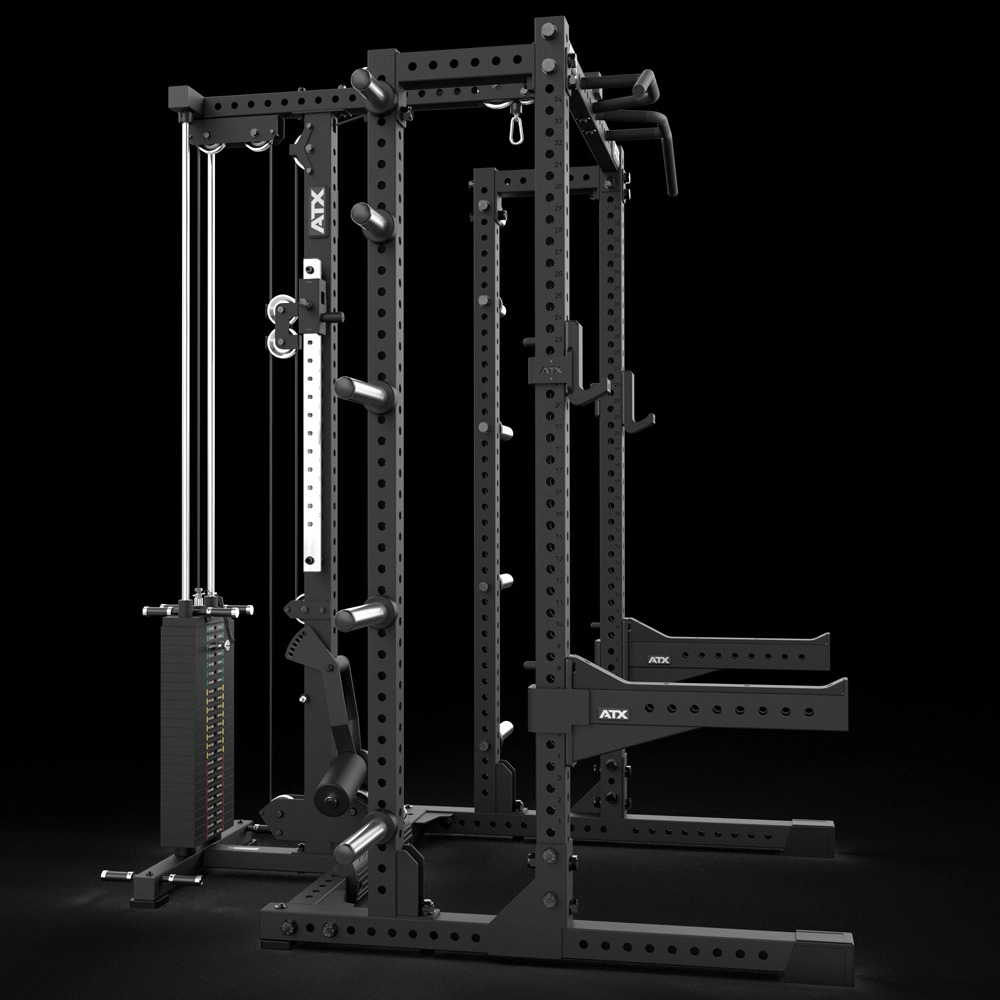 | ATX® HALF RACK + LATZUG OPTION - STECKGEWICHTE + STORAGE EXTENSION | ATX® HALF RACK + MODULARE BAUWEISE |