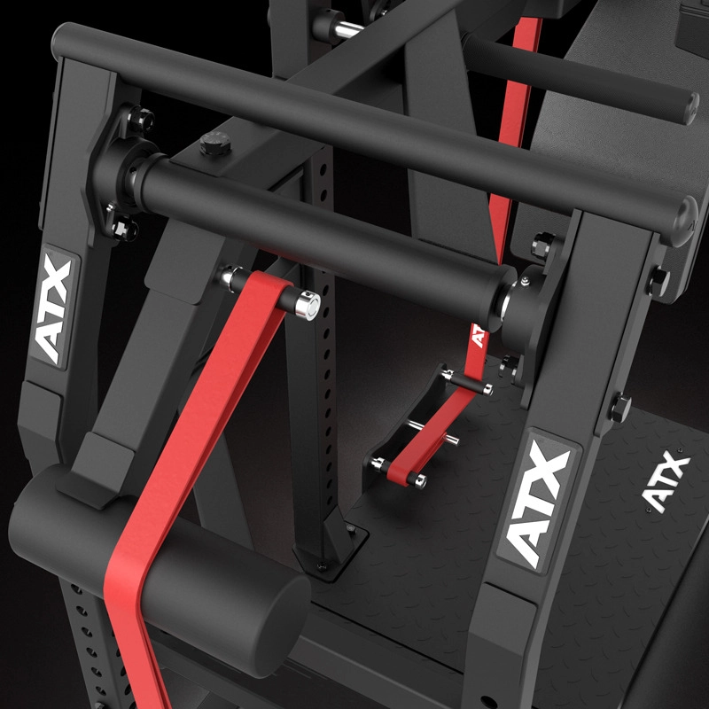 Die Pendulum Squat ist eine spezielle Kniebeugemaschine mit langer Tradition. Von vielen erfahrenen Athleten wird diese Art der Kniebeugemaschine als eines der effektivsten Geräte zur Entwicklung des Quadrizeps bezeichnet. Wichtig bei diesem Gerät ist vor allem eine exakte Winkelung von Fußblech zu Rückenlehne und ein optimal ausgelegter Hebelarm, um eine erstklassige Funktion mit besten Wirkungsgrad zu erzielen. Mit der beidseitigen Roller-Band-Peg Vorrichtung lässt sie der Kraftkurvenverlauf perfekt feinjustieren. ATX® hat hier mit zahlreichen Athletinnen und Athleten, fundamentalen Referenzwerten und dem erfahrenen Technikerteam eine extrem hochwertige Pedulum Squat entwickelt, das in diesem Preis-/Leistungssegment wohl unerreicht sein dürfte.