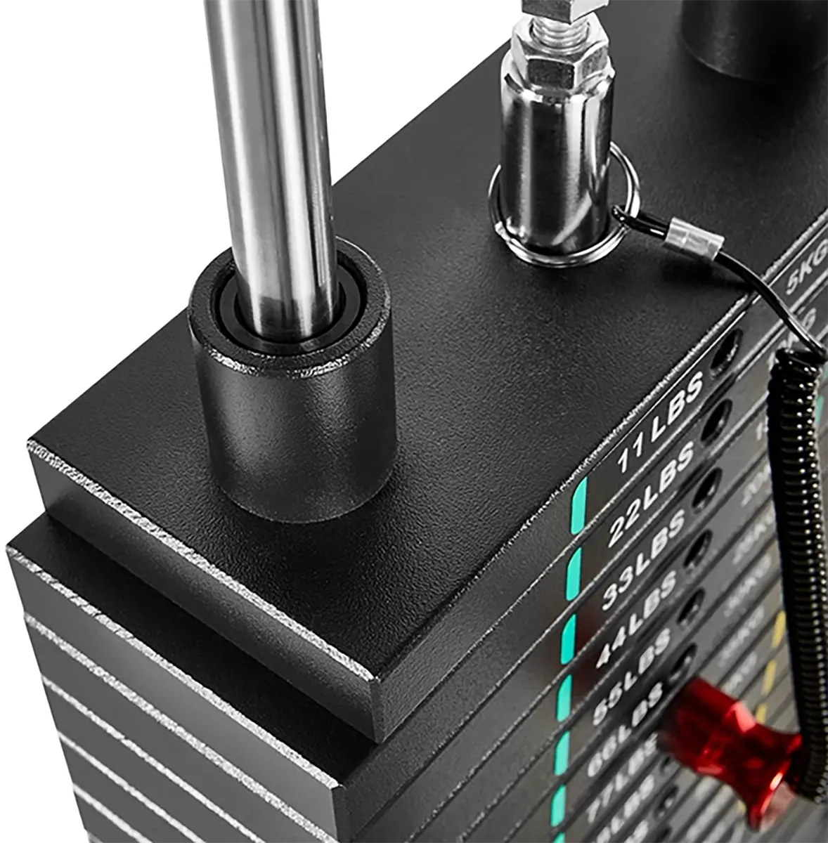 Seilrollen und die präzisen Steckgewichte mit Gleitbuchsenführung gewähren eine erstklassige seidenweiche Lauffunktion. Zwei