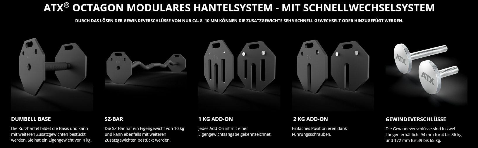 DIE ATX® OCTA-DUMBBELLS - MIT SCHNELLWECHSELSYSTEM - SIND VERSTELLBARE KURZHANTELN MIT EINER HERAUSRAGENDER FUNKTIONALITÄT UND QUALITÄT!