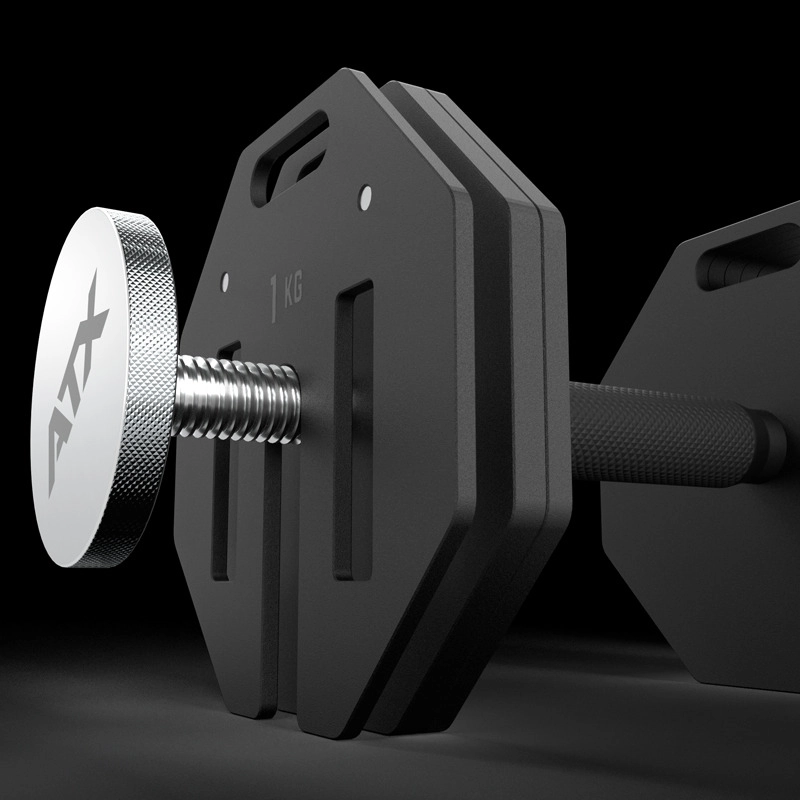 *Mit den optional erhältlichen ATX® Add-ON Flex Plates (flexible Zusatzgewichte) erweiterbar, was eine noch feinere Abstufung von +0,25 kg, +0,5 kg und +1 kg ermöglicht.