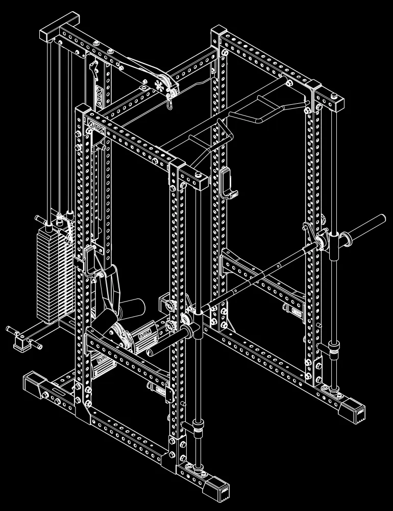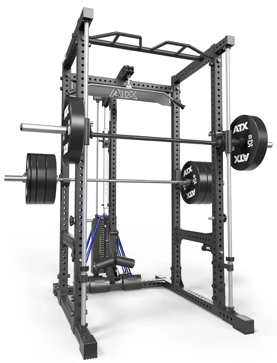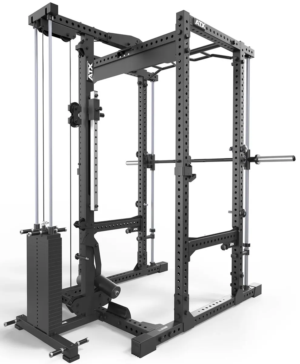 1 x ATX® Power Rack Komplettsystem mit Latzugstation 125 kg Steckgewichte + Multipresse