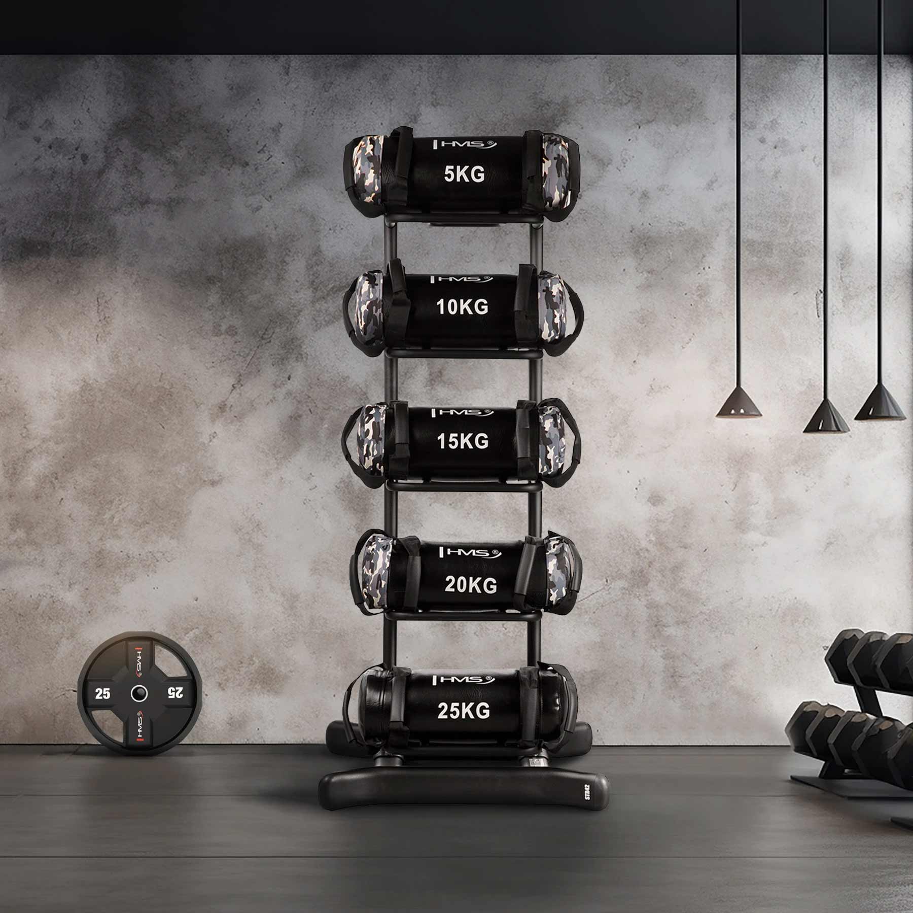 Der STR42 Powerbag-Ständer von HMS ist eine stabile und platzsparende Lösung zur übersichtlichen Aufbewahrung von bis zu 10 Corebags beziehungsweise Powerbags mit unterschiedlichem Gewicht. Durch seine vertikale Bauweise eignet er sich ideal für professionelle Fitnessstudios, Functional-Areas, Personal-Training-Räume sowie anspruchsvolle Homegyms.