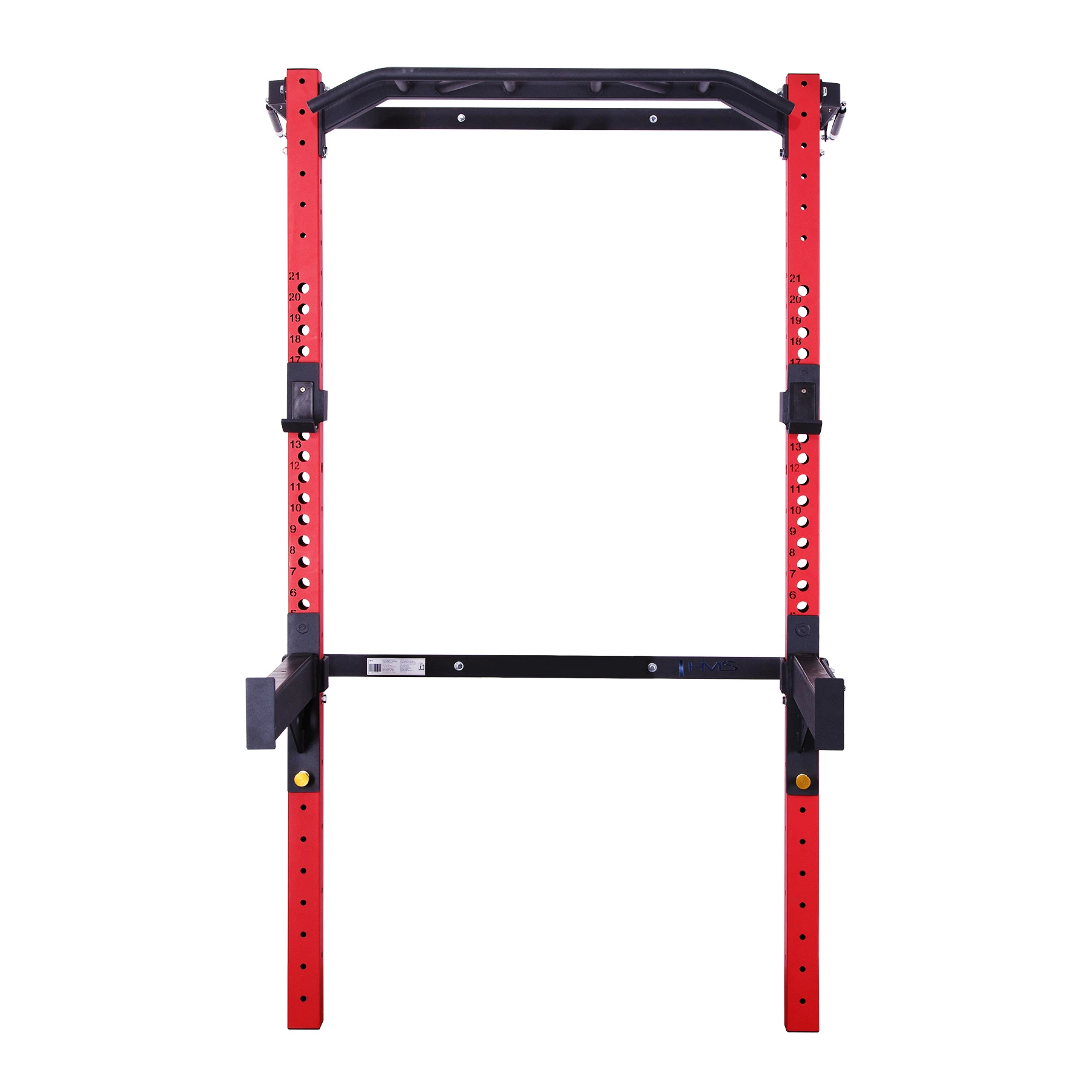 Das Fold Back Wall Rack KLT23 von HMS in Rot wurde entwickelt, um aktuellen Markttrends zu entsprechen und selbst anspruchsvolle Homegym-Nutzer zu überzeugen. In dieser Variante wird das Wall Rack mit Klimmzugstange, Langhantelhaken und Sicherheitsstützen geliefert und bietet damit eine solide Basis für vielseitiges Krafttraining zu Hause.