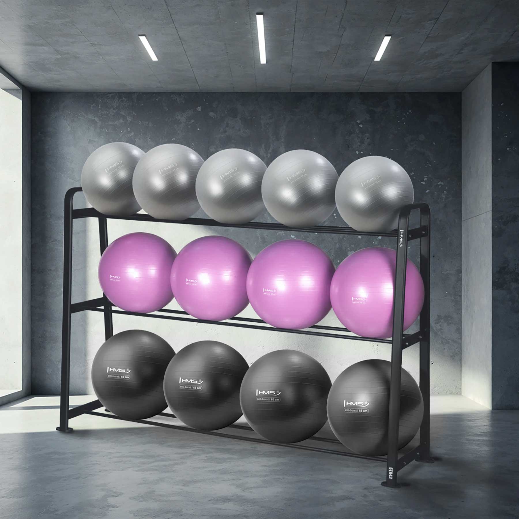 Der STR43 Trainingsballständer von HMS ist eine funktionale und großzügig dimensionierte Lösung zur übersichtlichen Aufbewahrung von Gymbällen unterschiedlicher Größen. Dank seiner dreistufigen Bauweise und der großen Gesamtlänge eignet er sich ideal für professionelle Fitnessstudios, Reha-Bereiche, Functional-Zonen und Trainingsräume mit hoher Nutzung.