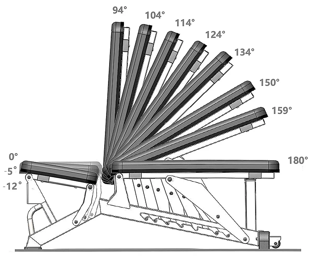 Mit 8-facher Rückenlehnenverstellung, 3-facher Sitzverstellung und stabiler Stahlbauweise ist sie ideal für anspruchsvolles Krafttraining mit Kurzhanteln, Langhanteln oder im Rack – perfekt für Homegyms, Personal-Studios und semi-kommerzielle Trainingsräume.
